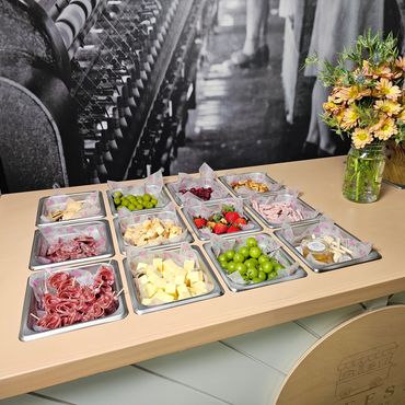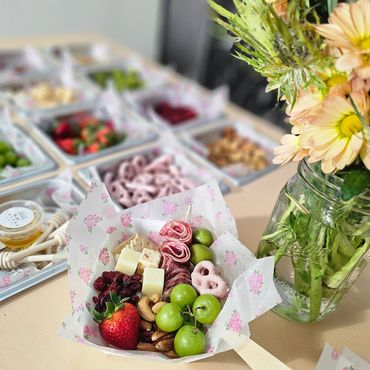 Elevate every occasion with our gourmet grazing options, featuring a handcrafted charcuterie cart, beautifully curated charcuterie boards, custom curated boxes, and delightful cheese cups. Deliciously curated and beautifully mobile, our offerings are perfect for your next event.